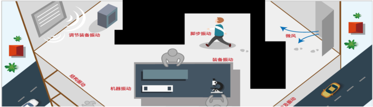 地基振動是指引發(fā)安裝臺面的地板搖動的所有因素,比如步行、車輛的行駛、施以建筑物外墻上的風(fēng)壓、空調(diào)設(shè)備等。聲音干擾則指由空調(diào)設(shè)備的風(fēng)壓、外部噪音等空氣壓力直接給產(chǎn)品帶來影響的因素。
