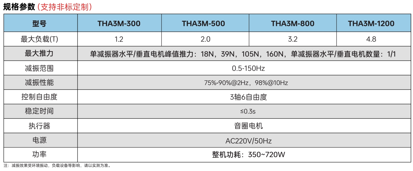 · THA3M系列主動(dòng)減振器采用金屬?gòu)椈勺鳛楸粍?dòng)隔振單元,搭配不同推力的音圈電機(jī),適用于微動(dòng)平臺(tái)及動(dòng)平臺(tái)。